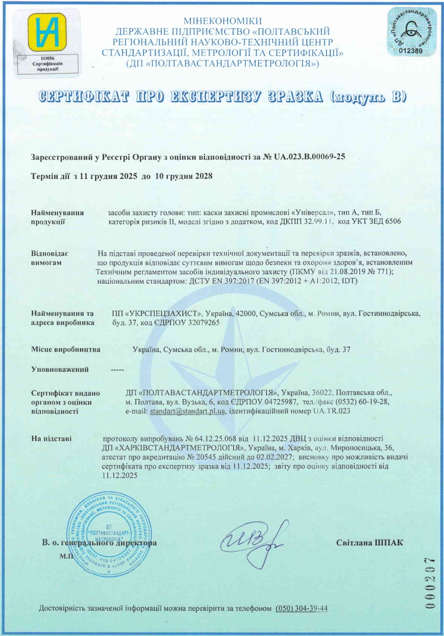 Сертифікати відповідності на захисні каски