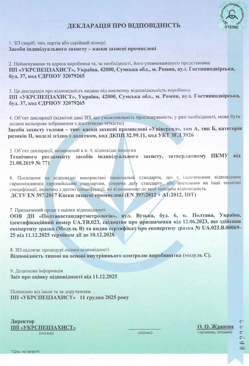Сертифікати відповідності на захисні каски